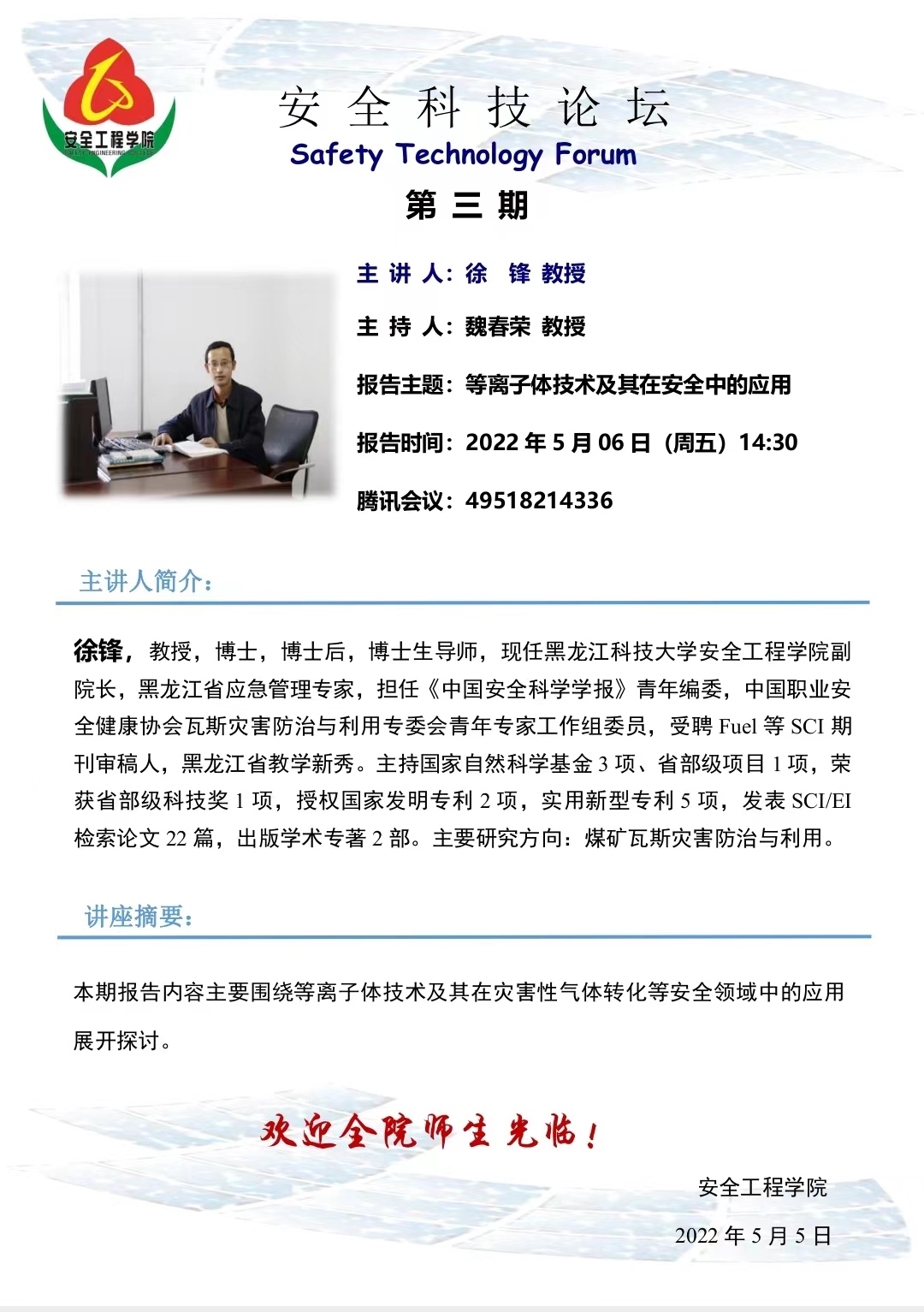 安全科技论坛第三期 主讲人 徐锋教授