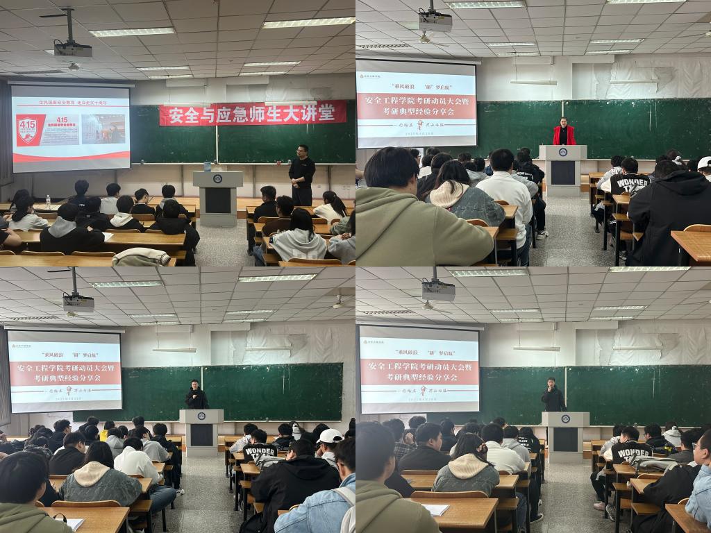 以“讲”传经,榜样引领成长。学院邀请保研典型、考研典型和就业典型开展经验交流会,充分发挥优秀学子的榜样示范作用。在交流会上,保研成功的同学分享了自己在专业学习、科研实践、竞赛活动中的宝贵经验;考研典型则从备考计划制定、心态调整、复试技巧等方面进行了细致的讲解,为考研学子提供了实用的参考;就业典型结合自身求职经历,分享了职业规划、简历制作、面试技巧等方面的心得,帮助2026届毕业生更好地了解职场需求,明确就业方向。同时,学院邀请专任教师举办了安全与应急师生大讲堂,依托学科专业,将专业课程与安全教育深度绑定,并结合国家安全案例深化专业理论认知。这些活动将优秀学子的成长轨迹转化为可借鉴的实践路径,将专业教育与国家安全教育深度融合,既强化了学生的专业素养,又厚植了家国情怀。