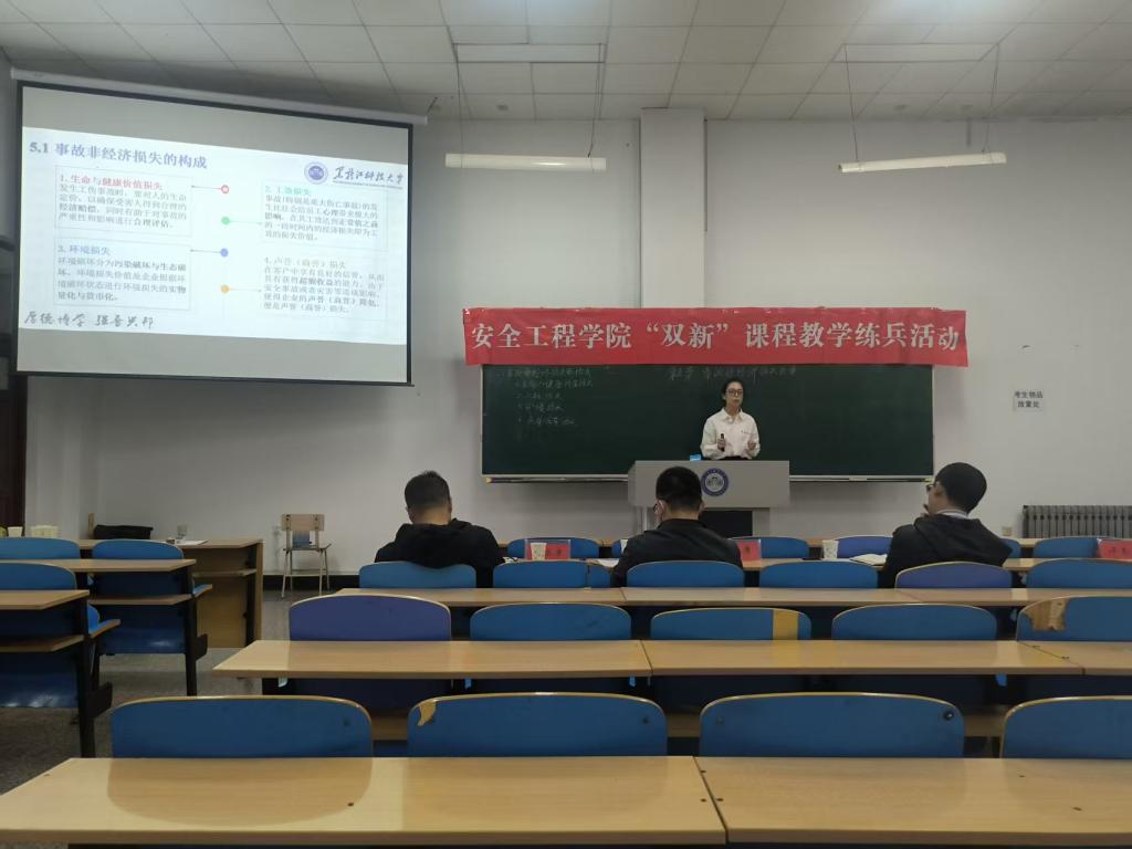 活动中,四位新教师围绕“双新”建设要求,结合安全工程专业特色精心设计教学内容。充分体现自身优势:王轩轩老师聚焦专业核心知识点;姜雪老师将课堂重点巧妙地体现在板书设计中;孙世鹏老师注重实践导向,强化知识应用能力培养;洪铭老师善于启发学生,层层递进引导学生探究,展现了良好的课堂把控能力。每位教师均严格遵循比赛授课要求,在有限时间内高效完成教学目标,充分展现了青年教师的教学潜力与创新思维。