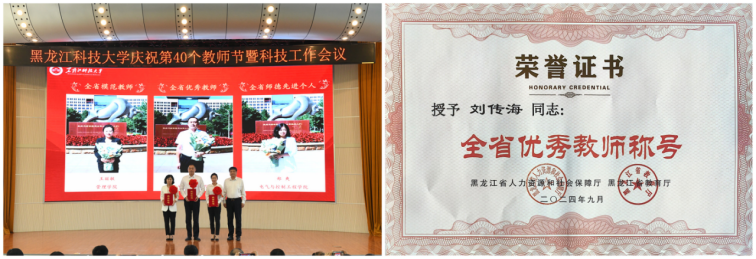 学院刘传海副教授在2024年全省教育系统先进集体和先进个人评选中荣获黑龙江省优秀教师荣誉称号。