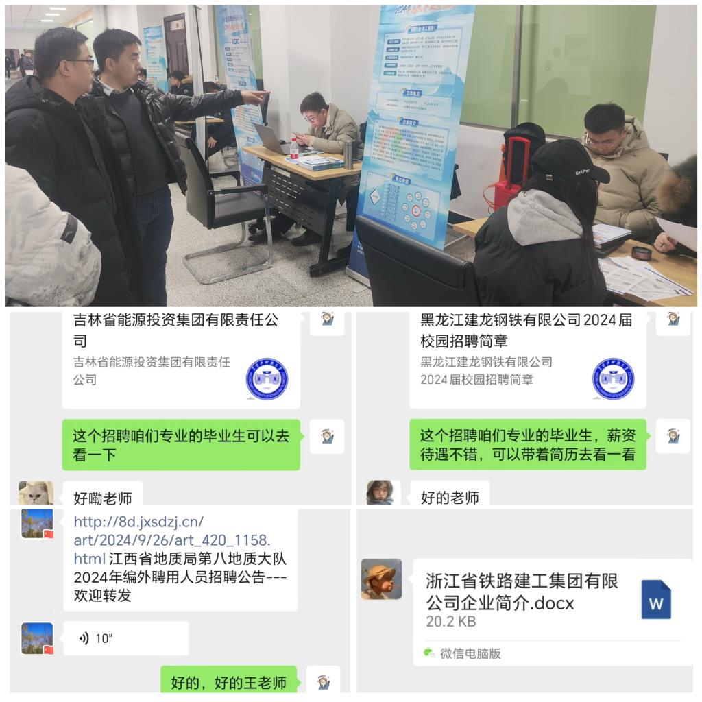 拓宽就业渠道,满足毕业生多元化求职需求。leyu乐鱼官网积极开展“访企拓岗促就业”专项行动,拓宽就业渠道、提供更多更优岗位,院长、副院长、系主任利用假期深入企业进行访企拓岗,为毕业生提供就业岗位20余个,成功签约4人;leyu乐鱼官网立足春招进校企业,党委书记、副书记及就业辅导员深入招聘现场,与企业对接并展开了深入的供需交流;leyu乐鱼官网依托校友资源,为毕业生提供有针对性的岗位信息,并发动全院教师在开展科研工作时,向科研单位推荐毕业生,形成了全员促就业的强大合力,形成了“守好一段渠,种好责任田”的生动局面。