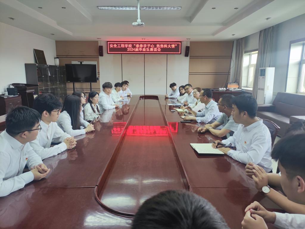 一场毕业座谈,倾听学子心声。为用心用情做好2024届毕业生离校工作,广泛听取毕业生对学校学院高质量发展的意见和建议,leyu乐鱼官方网站召开了以“拳拳学子心 悠悠科大情”为主题的毕业生座谈会。学院党委书记王娟、院长徐锋、副院长王亚军、毕业年级辅导员薛广鑫参加会议,座谈会由党委副书记郑红岩主持。座谈会上,各毕业生代表围绕学生工作、学风建设、实习实践基地以及就业指导等多个方面为学校和学院的发展建言献策。学院领导、老师与学生代表们进行了深入交流,整个座谈会氛围热烈,共收集建议17条。学院院长徐锋对毕业生送上三点殷切希望:一是希望毕业生们做一个对社会有用的人;二是希望毕业生们做一个善良的人;三是希望毕业生们做一个幸福的人。通过座谈会,加强了学院与学生之间的沟通,激发了毕业生的爱校情怀,坚定了毕业生感恩社会、回报社会的决心。
