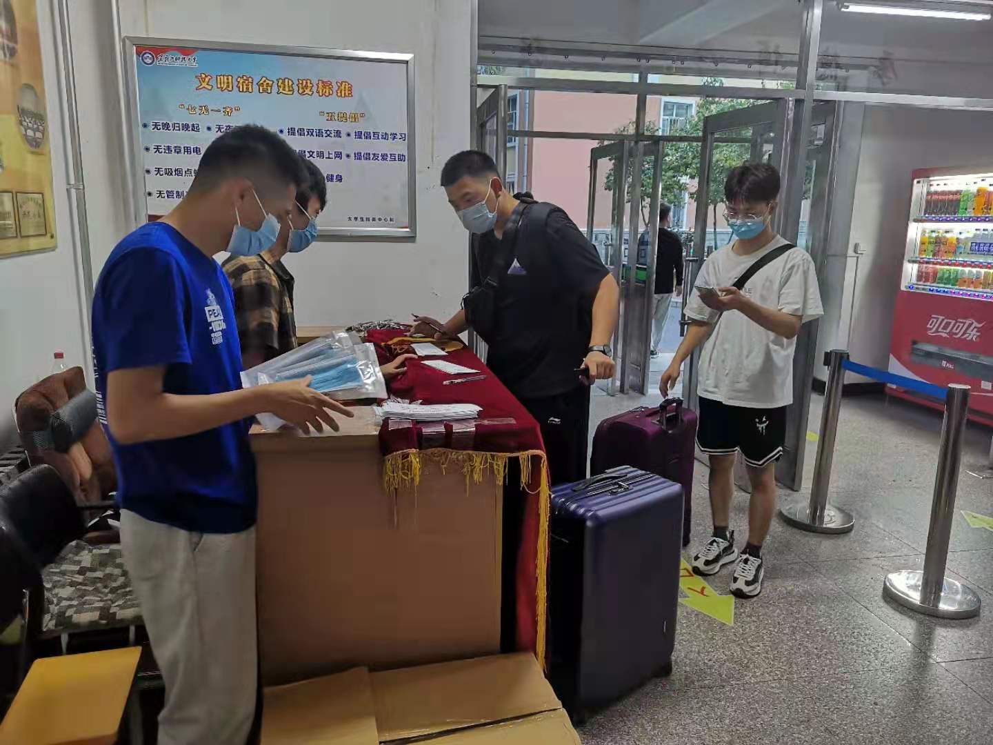 在新生报到前,学院召开了志愿者培训大会,细致布置,明确分工。报到当天,布置好各接待区,做好新生报到服务工作,做到让每一名新生在这个陌生的环境中都能感受到学院的温暖。学院领导、辅导员、班主任等也分别深入迎新现场、寝室,通过与学生谈心了解学生情况,并叮嘱学生做好个人防护,自觉维护校园防疫秩序。