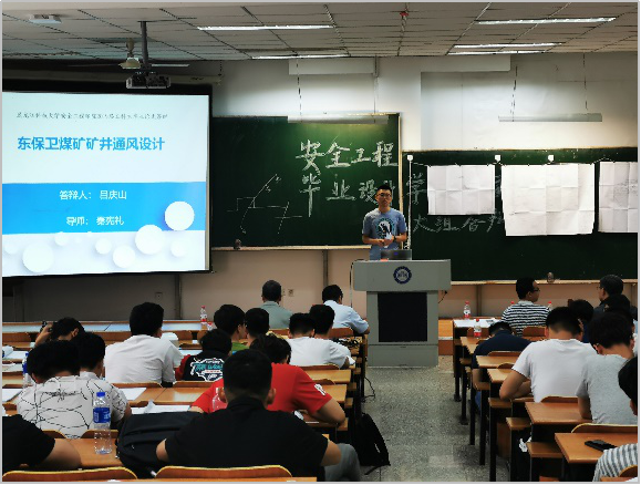参加今天大组答辩的三组设计,分别是葛畅、唐李强完成的东荣一矿三维矿井通风仿真设计,刁先雷、张焘完成的武汉市江岸区政府机关综合楼自动喷水灭火系统设计,以及吕庆山完成的东保卫煤矿矿井通风设计。每组同学分别进行德育和设计陈述,答辩委员会及专家现场提问。在答与辩的过程中,三组同学展现了扎实的专业基础,较强的实践应用能力,得到了一致好评;同时,对一些问题理解的不全面,也为今后学习和工作提出了新要求。