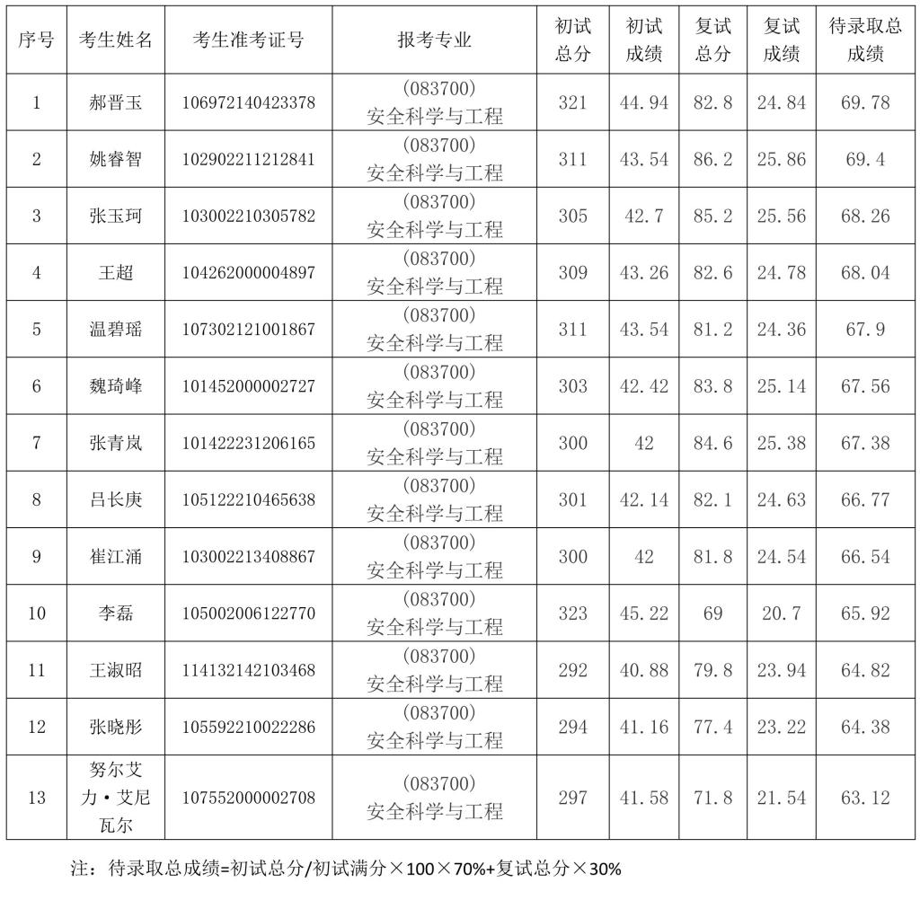 leyu乐鱼官网2022年安全科学与工程专业硕士研究生第二批调剂复试工作已结束,现将考生复试成绩公示如下。