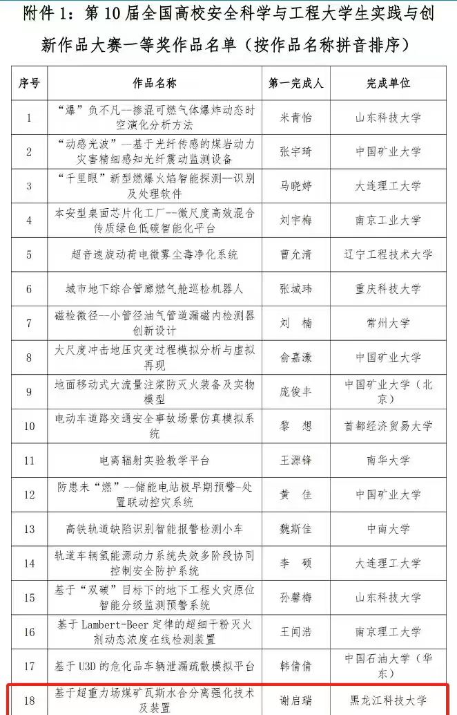 该赛事是目前国内高校安全工程专业领域影响最为广泛、评价最高的国家级比赛,旨在引导、激励安全工程专业学生的创新精神、探索意识和实践能力。leyu乐鱼官网leyu乐鱼官方网站在安全科学与工程学科竞赛中经过多年培育,已经逐步形成良好的竞赛机制,在该项赛事上连续三年荣获全国一等奖,取得了丰硕的成果。本次获奖将进一步增强专业自信,激励更多学生积极参与安全科学与工程领域的创新研究和实践,为提升leyu乐鱼官网安全工程专业影响力作出积极贡献。